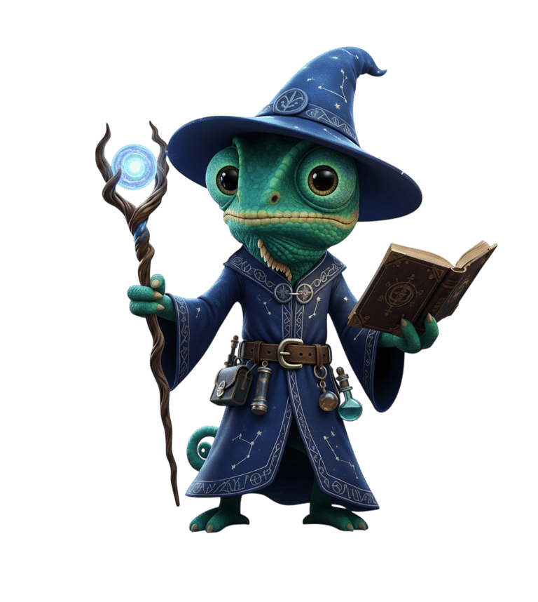 Te presentamos a IRO, nuesta mascota oficial. IRO llegó al mundo en ese momento preciso en que un ser humano mira una hoja en blanco y decide, con valentía, llenarlo de alma. Es un camaleón — pero de los que revelan. Cada escama suya es un color que todavía espera ser pintado, cada destello de su piel es una emoción que aguarda ser nombrada. Con su vara en mano y siglos de sabiduría en la mirada, IRO camina entre el arte y lo invisible, entre lo que sientes y lo que aún busca la manera de expresarse — y te tiende la mano.